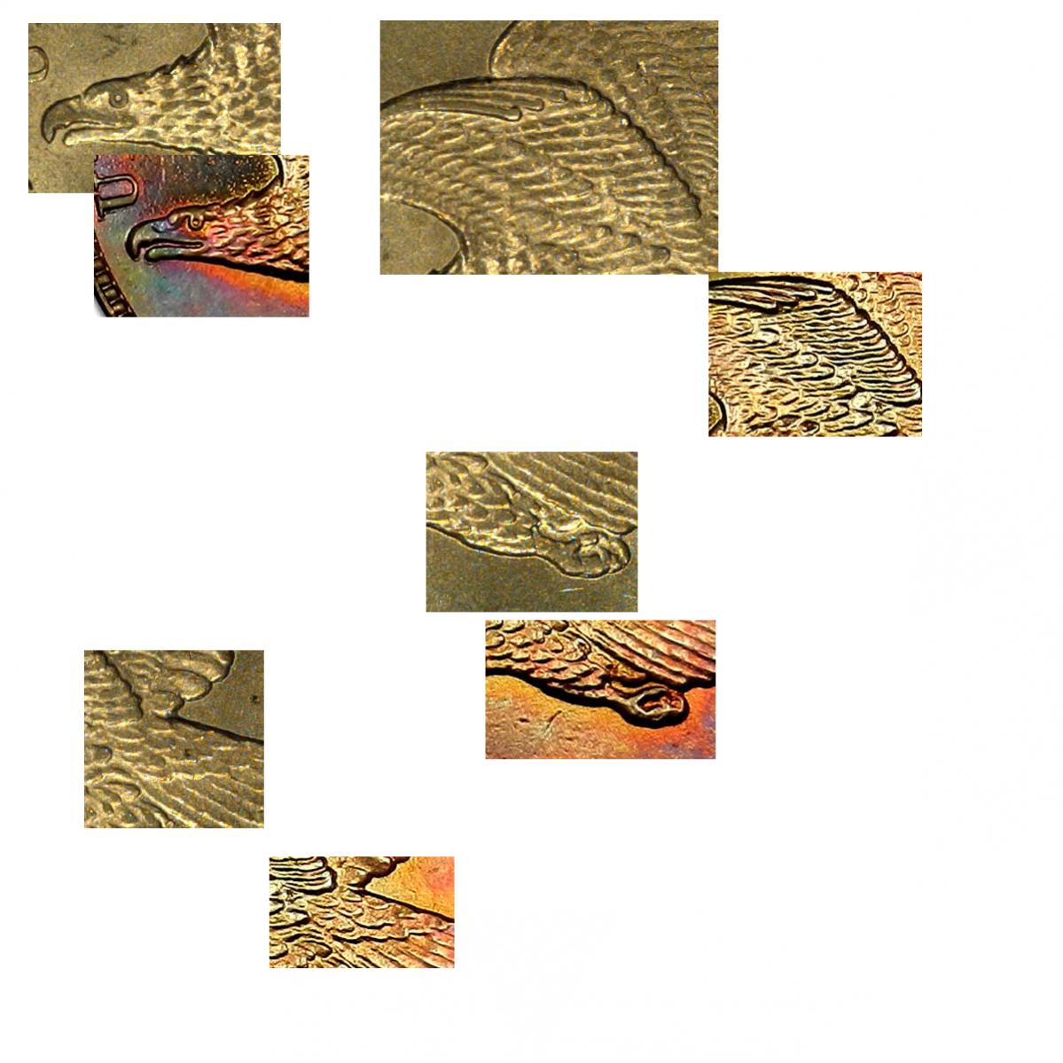 The biggest issue I saw with the coin is the uneven luster/shine. The eagle's luster looks superb, but the fields on the coin (especially on the obverse) look uneven. Maybe it's just my eyes, but there seems to be cloudiness below and above the eagle, while there's stronger, deeper luster in front of and behind the eagle. The cloudiness makes me worried that it's been cleaned/polished before (making the surfaces more sensitive and prone to clouding) -- but hey, that's just my conjecture, a day late no less :)