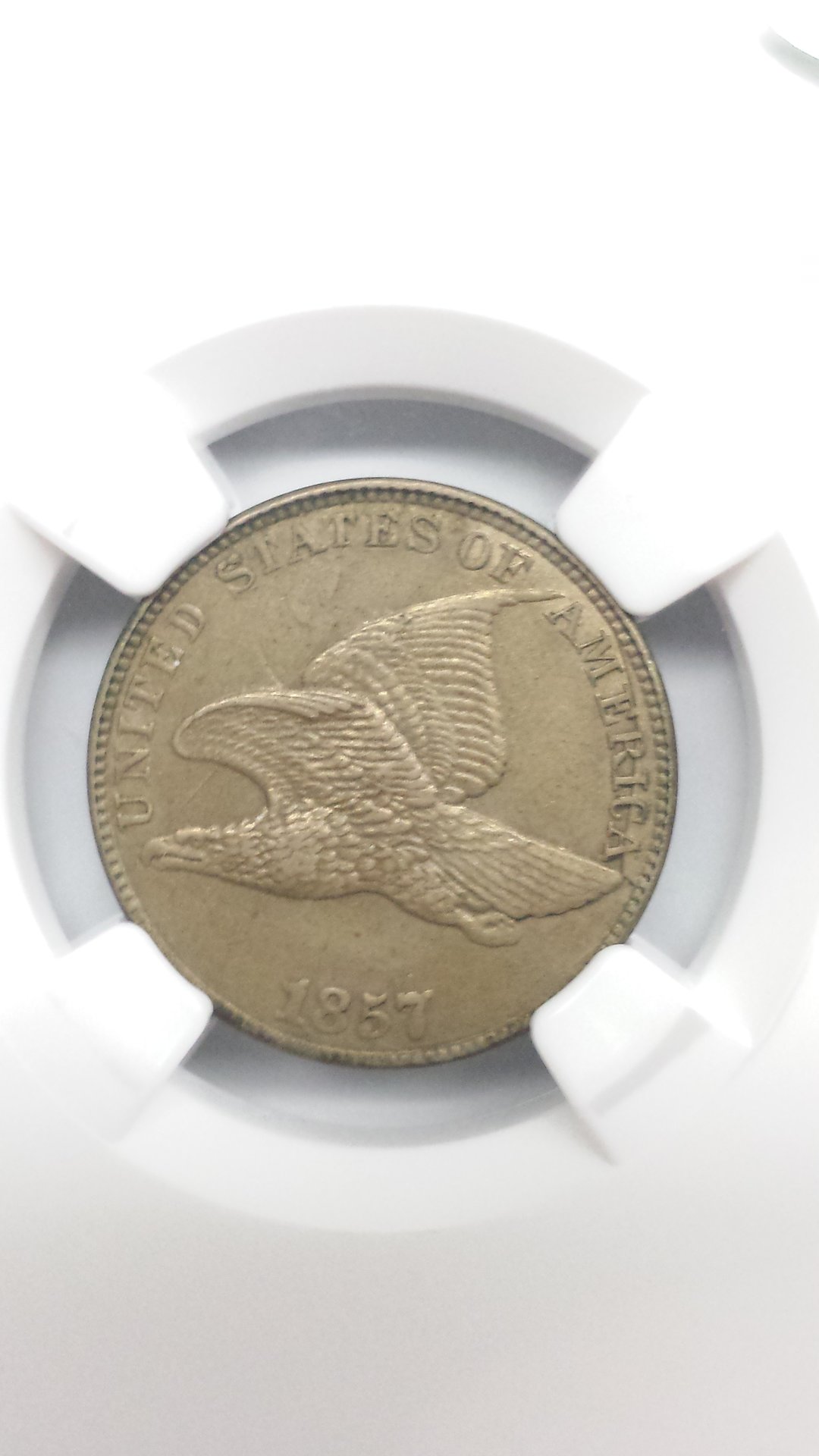 Bought this 1857 Flying Eagle on ebay last week. I really wanted on with a CAC sticker, and this was at the upper end of my price range. Received it today, and noticed the obvious clash marks. I know zero about these varieties, so I took a quick meander through PCGS Coinfacts for some pics. Staring me in the face was the Snow-9 50 cent clash variety! Do you think think this would be worth getting attributed by NGC? I would lose the CAC sticker, but my local dealer is a CAC dealer, so he can resubmit. Thoughts on this find?
