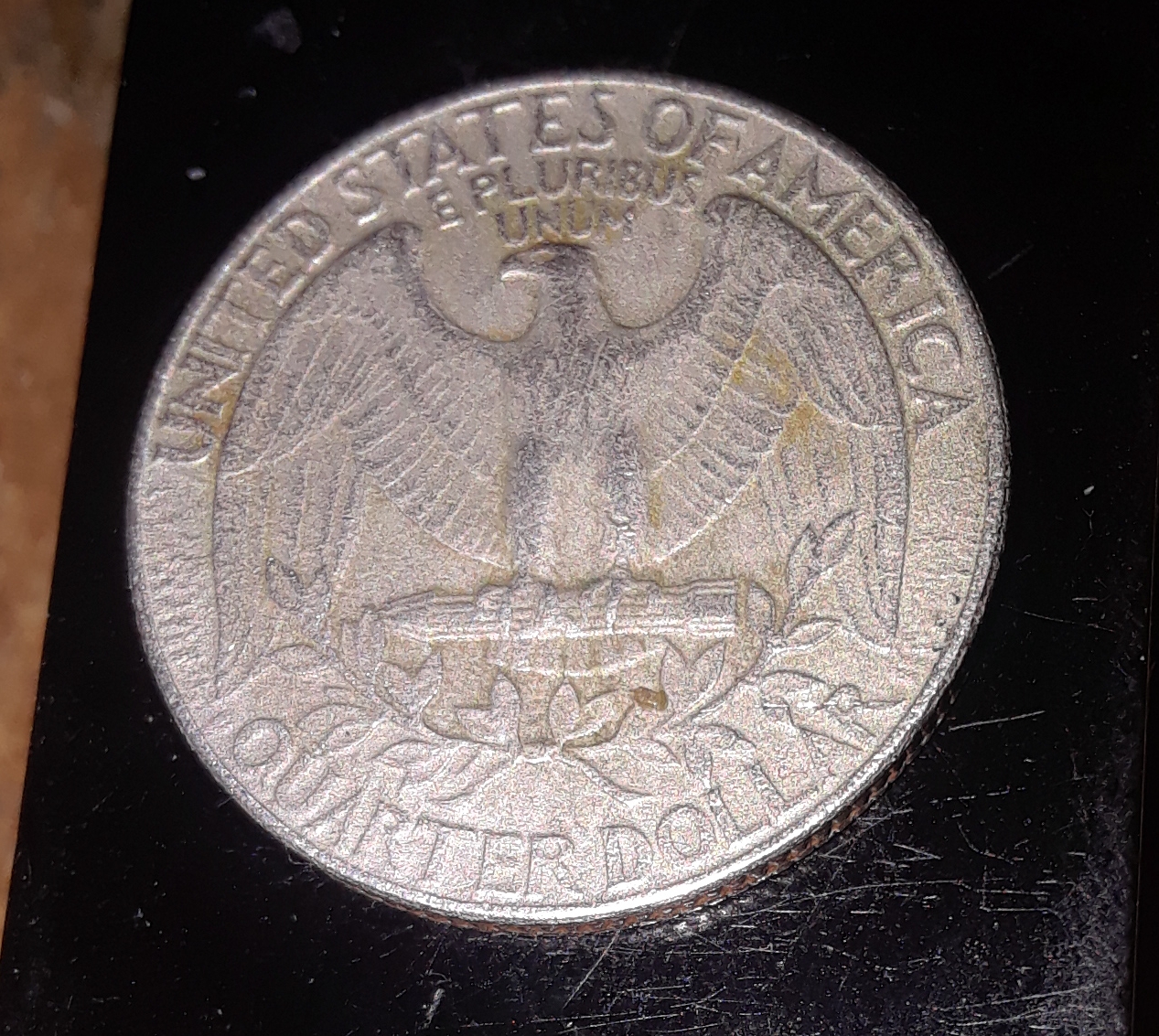 Oh it’s electrolysis judging by the worn and faint metallic crystals of nickel in the clad layer on the coin using sulfuric acid to turn into metallic, inorganic sulfate salts. Don’t worry I have a coin like this it’s a 2000P penny with dentritic copper crystals on the plating