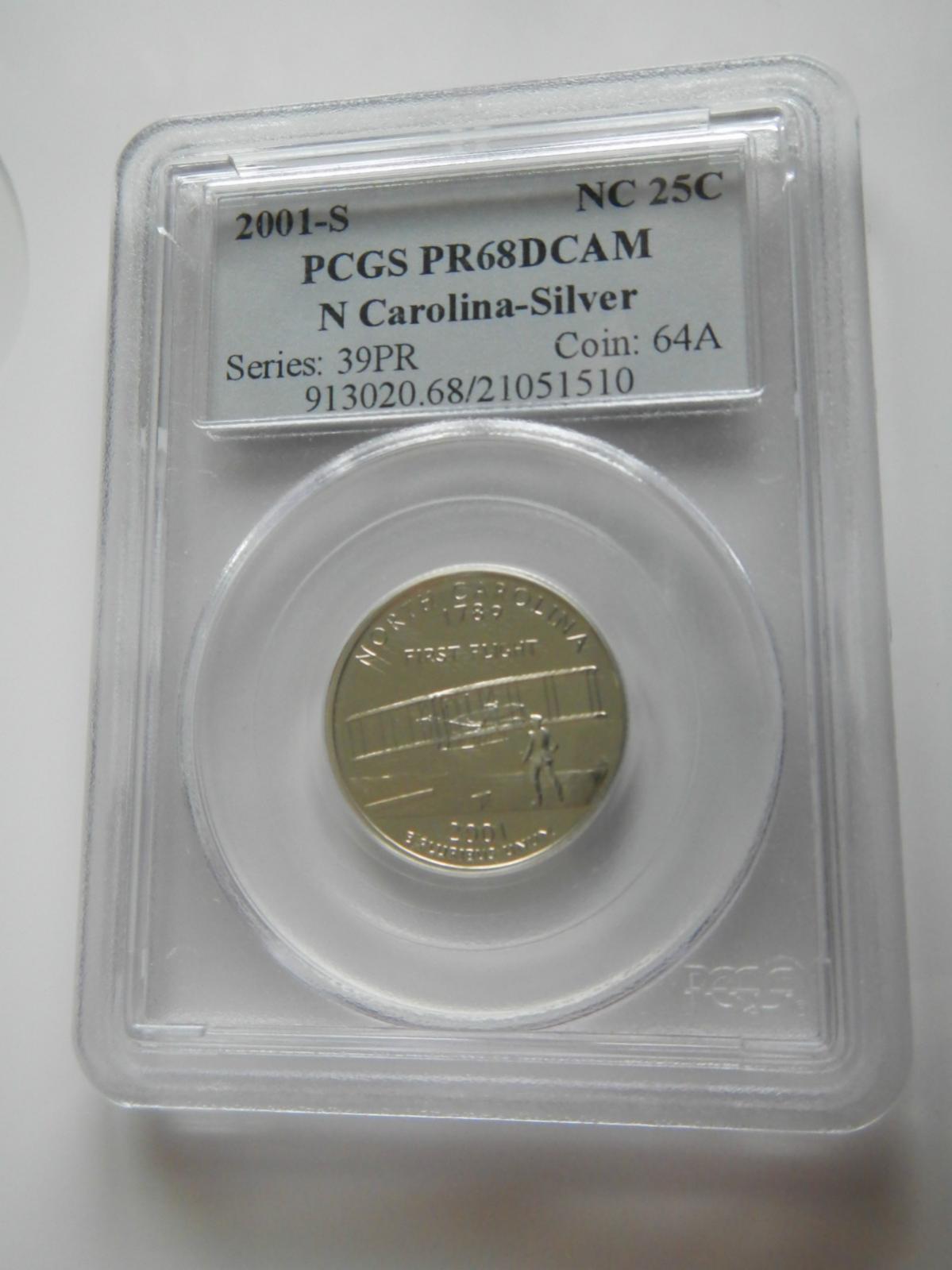 2000-S 25C PCGS PR68DCAM Massachusetts Silver State Quarter 2001-S 25C PCGS PR68DCAM N Carolina Silver State Quarter Here is my ebay account for what it's worth I have 100% positive feedback. http://myworld.ebay.com/appliancejunk/ I'm also the owner of the website http://appliancejunk.com It's been online for over five years now. I only point that out to let you know that I'm not someone that would be difficult to find. Sorry if I have broken any rules with my first post in the WTT forum. I tried to read through and follow the rules before posting. I'm looking to trade these two quarters towards a ASE bullion. Don't care about the date or condition just so it don't look like it's been in your pocket since 1986. I don't expect to trade them even up for any ASE so I'm willing to throw in some cash. Being new around here I have yet to learn who are the old timers to be trusted, but if after doing some research I decide to except a trade I would be willing to ship my items first. Please let me know if you have any question, offers or if I need to correct something in my post. Thanks,