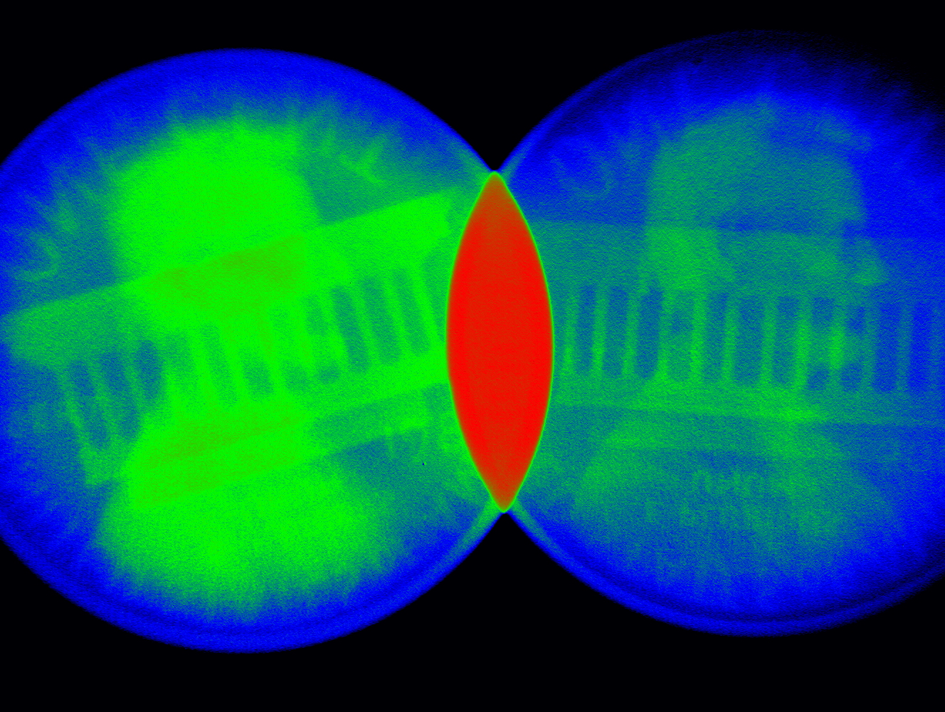 Can you tell if the red is due to thickness versus density? obviously in this picture we know the red is due to the thickness. But I would expect the material in the devices (i.e. Lincoln's big fat noggin) to be less dense than the fields yet the devices are green and the fields are blue. In other words the color variations seem only to be an indication of thickness not density. Just curious.
