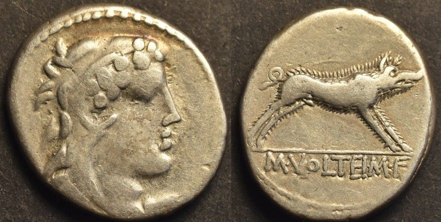 Well, the SteveX6 Collection hit me again! I always liked this Denarius because of the cool Boar DETAILS, and, yeah, it is from the Republic. This is the year after Sulla stepped down as Dictator (and the year he died.). My FIFTH capture from that Eclectic Assemblage: RR M Volteius Mf AR Denarius 78 BCE 18mm 3.96g Hd Hercules R lion skin headdress - Erymanthian boar Cr 385-2 ex SteveX6