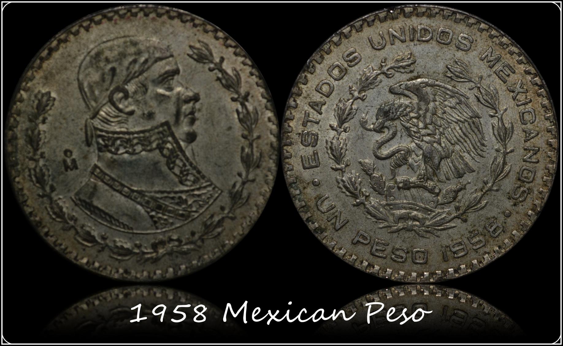 Mine, though not ancient, would be my 1958 Mexican Peso, 10% Silver, but not sure of the rest of the alloy, it sure is a nice design when it is in MS condition, but super ugly like this: