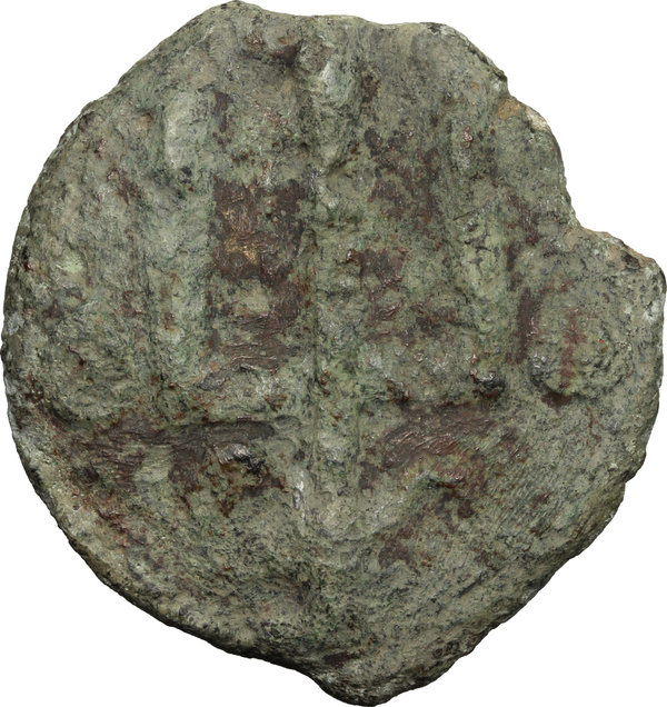 Central Italy, uncertain. AE Cast Sextans, c. 280-260 BC. Obv - Anchor; two pellets; Rev - Trident; Vecchi ICC 297