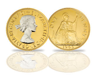 looks like one of the london mint monstrosities plated pennies which are usually the least valuable ones from either 1965 0r 1967, worth around 10p per coin but they put a bit of plating on them and charge around £25.