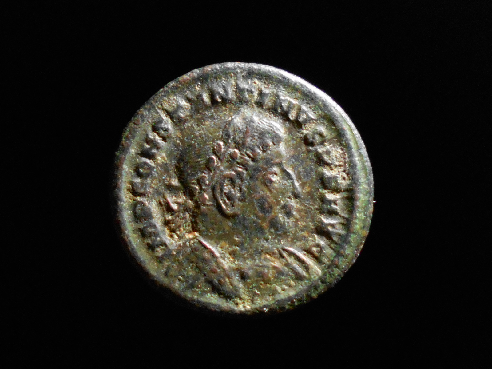 When IDing 4th century coins it is wise to start with the reverse and see who issued that particular type. You will still have to separate some with the same/similar names but generally you can narrow it down to three or so.