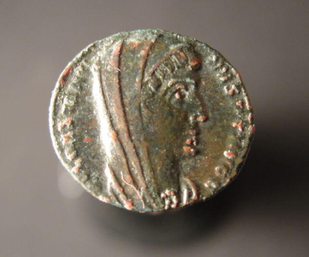 I've got a Crispus (Son of Constantine) coin. Mine is a Crispus Noble Caesar with VOT X on the reverse. CRISPUS Caesar 317-326 AD AE3 (19 mm diameter) Obv: IVL CRISPVS NOB C Laureate head facing right Rev: CAESARVM NOSTRORVM Laurel wreath around (VOT - X), HSIS in exergue. Other: Similar to Sear #3918