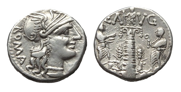 That is also one of the first coins that differed from the typical discouri on horseback or Roma in quadriga reverses. I wonder if that was controversial in its time.