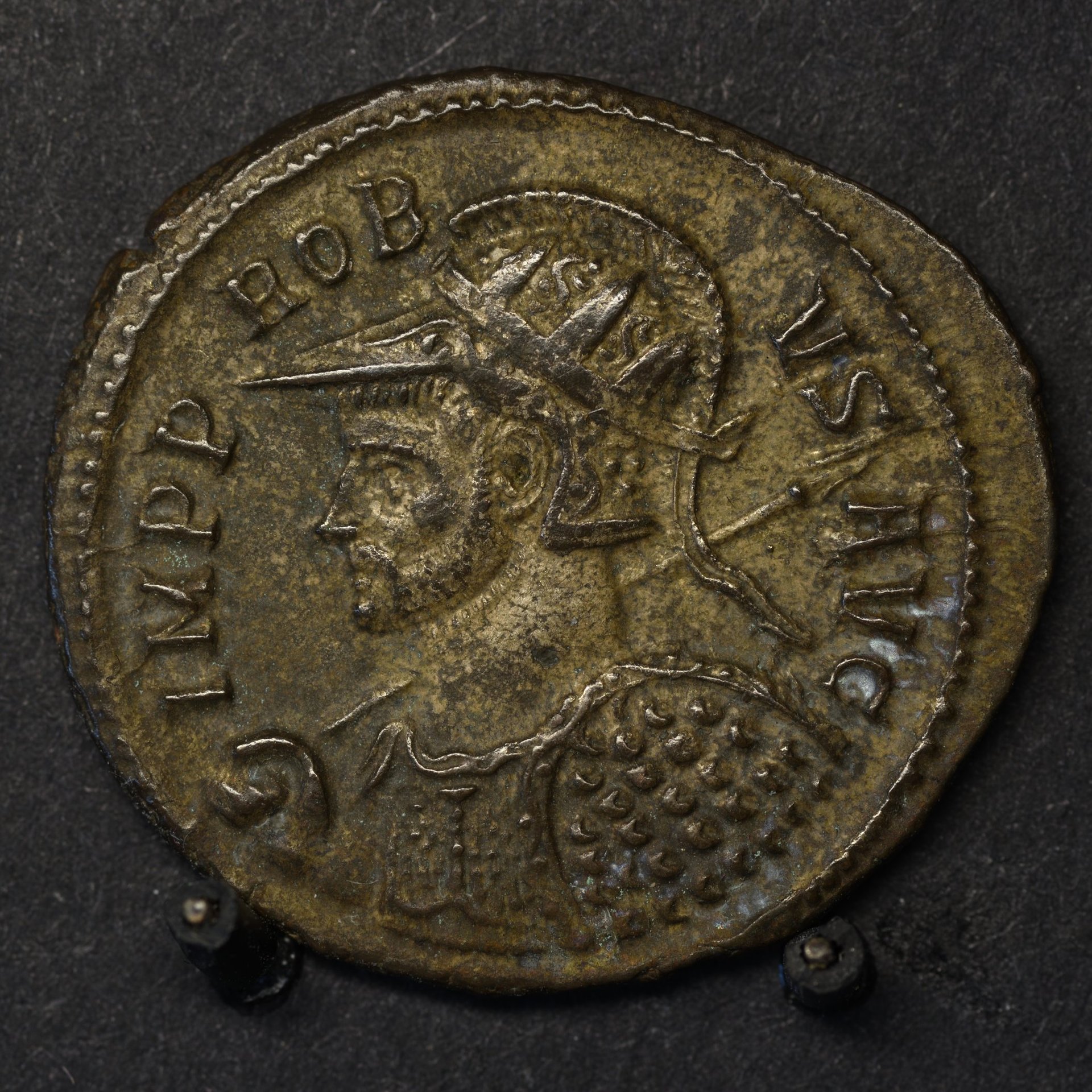 This Probus arrived today. A nice example of one of those elaborate portraits of Probus in full fighting gear was on my to-acquire list for some time and now it's here! Probus, antoninianus/Aurelianus, Rome mint, R-star-sigma in exergue. RIC 157, Cohen 37. Weight 3.35 grams.