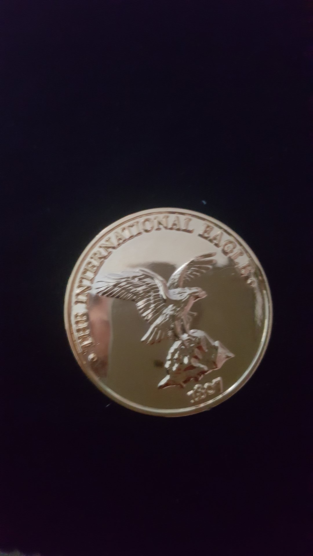 From what I've been able to find it is likely to be a gold plated medallion or token of some kind. Furthermore, this isn't the only time something similar has appeared here on cointalk. https://www.cointalk.com/threads/1807-international-eagle.7856/