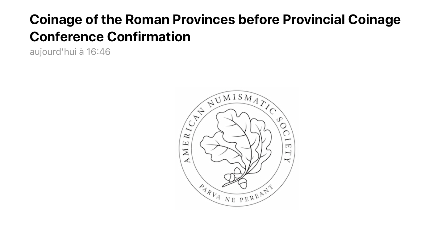 https://coinsweekly.com/conference-on-the-coinage-of-the-roman-provinces-before-provincial-coinage/ From 23rd to 25th March, co-sponsored by the ANS and the Department of History of the University of New-York. You do not have to be a member and it's free ! You have to reserve your place before March 22nd. When it's done, you'll receive a personal zoom link with a password. Hoping to see you there. (By the way, two of our members here on Cointalk will be speakers at that event)